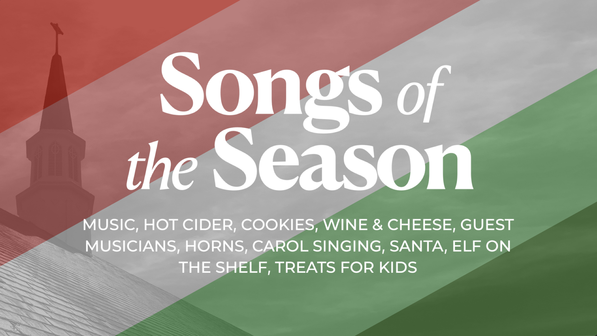 Music, hot cider, cookies, wine & cheese, guest musicians, horns, carol singing, Santa, Elf on the Shelf, treats for kids, friends, and family.